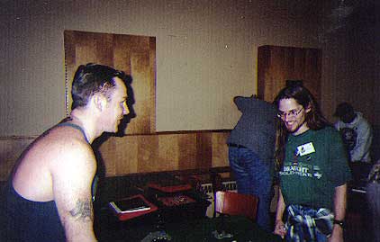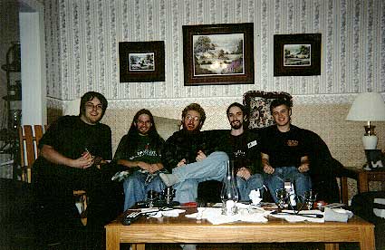 Dave handed me a bunch of photos, so I scanned 'em and I'm puttin 'em on the web. I will invent captions for them as I see fit - anything in the captions that someone may consider to be libelous or slanderous is there by sheer co-incidence, and any attempts at legal recourse will result in immediate removal from the material universe and eternal imprisonment in a parallel universe dominated by one of the four major Chaos Gods... probably Slaanesh, but I'm not making any promises; could be Nurgle. In any case, don't sue me; I'm nice.